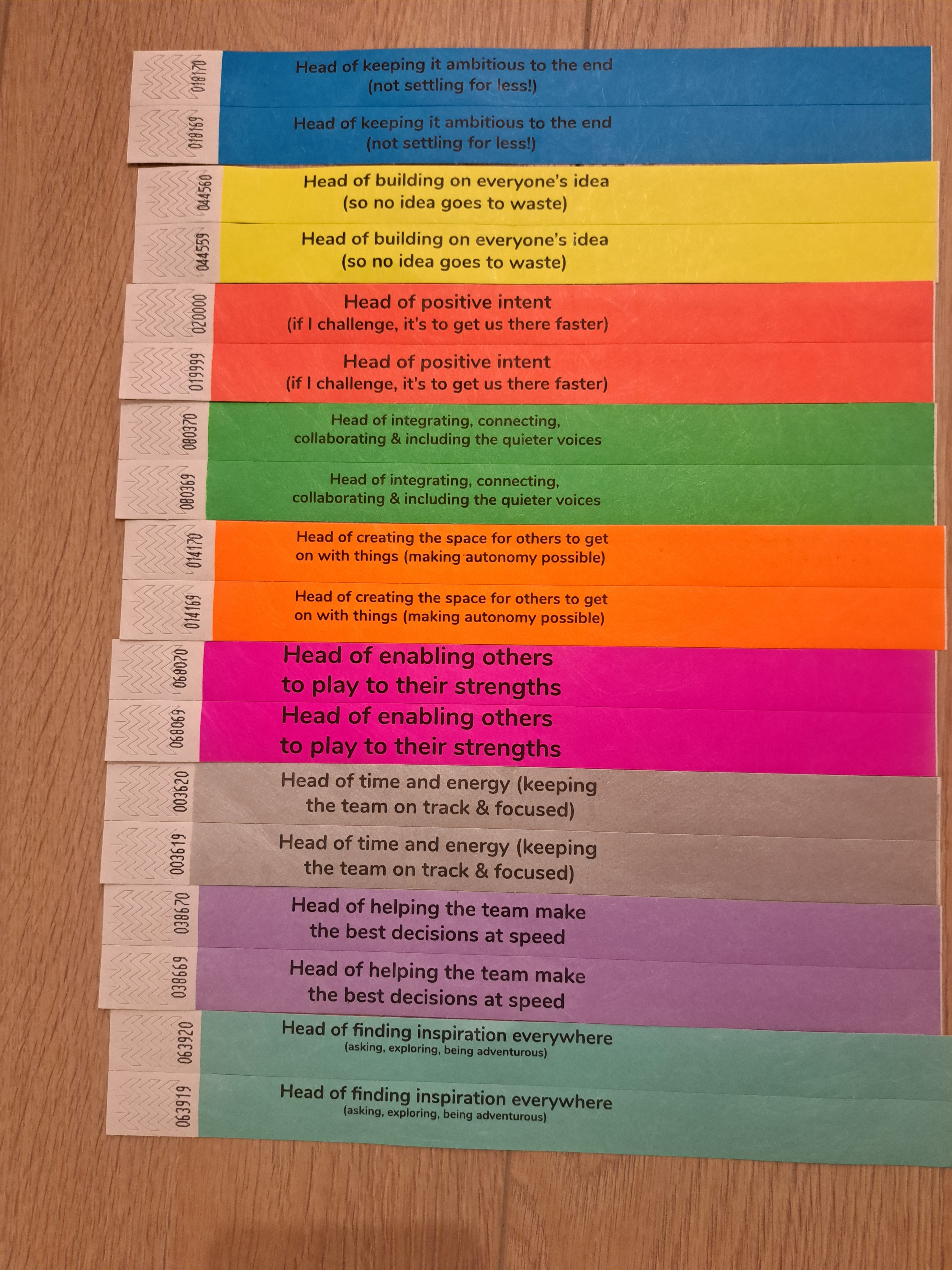 Speaking of being intentional, as I was (finally) setting up my home office, I found these wristbands in a box (image below) printed a very long time ago for workshop participants. I can’t remember whether I created these or if they were made while working with another partner, but I love the idea! Might revisit this with something more up-to-date for my work today. If you recognise them, let me know! I’d love to know where these came from!